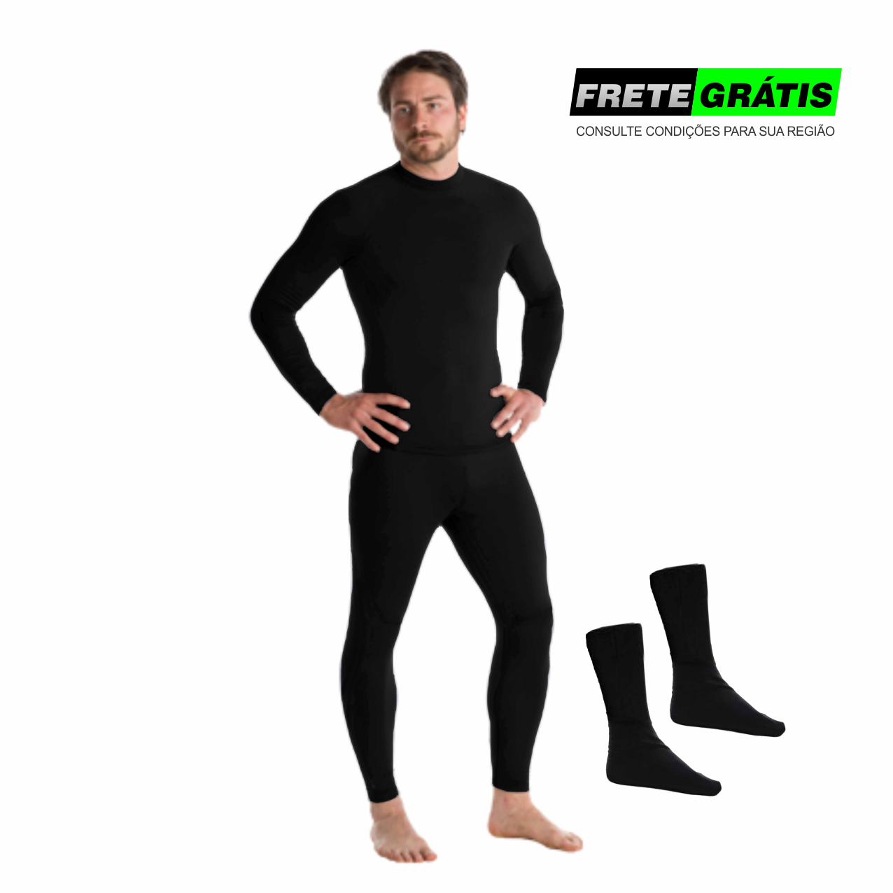 Produzido com material de altíssima qualidade com toque macio e muito resistente, não deixa cheiro e não retém o suor, ajudando a manter o corpo seco, o que é necessário para evitar sensações térmicas mais baixas ainda.